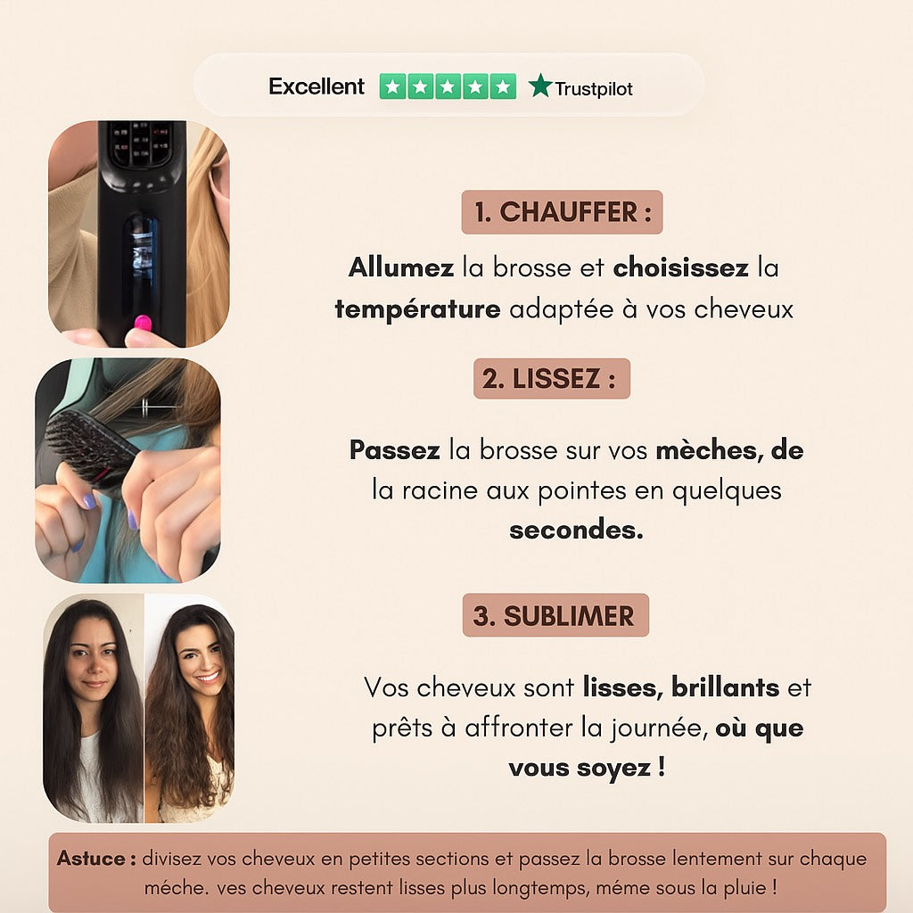 Oui ! MyBrushHair est conçue pour s’adapter à tous les types de cheveux — qu’ils soient fins, épais, bouclés ou raides — pour un lissage doux et efficace à chaque utilisation.